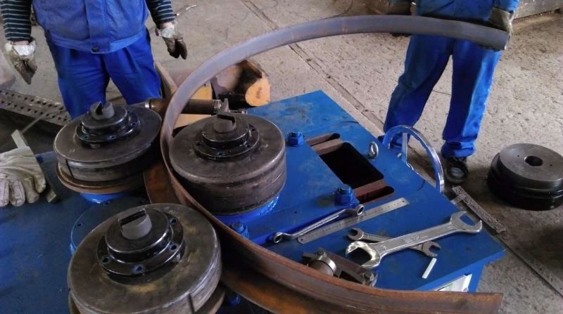 F6型卷圓機(jī)是對(duì)稱式三輥型材卷圓機(jī),集機(jī)電一體,將電動(dòng)機(jī)輸出的較高轉(zhuǎn)速通過(guò)傳動(dòng)裝置、聯(lián)軸器、減速機(jī)、齒輪等轉(zhuǎn)換為所需的大轉(zhuǎn)矩低轉(zhuǎn)速,帶動(dòng)位置固定的兩主動(dòng)輥實(shí)現(xiàn)旋轉(zhuǎn)運(yùn)動(dòng),為型材行走提供扭矩。被動(dòng)輥通過(guò)手輪前進(jìn)、后退實(shí)現(xiàn)位移,為卷制型材提供所需的加壓力,位移量由數(shù)字標(biāo)尺實(shí)時(shí)顯示。三個(gè)工作輥成等腰三角形分布,通過(guò)移動(dòng)被動(dòng)輥位置實(shí)現(xiàn)這三個(gè)點(diǎn)形成的弧線達(dá)到所需彎曲半徑,即調(diào)整所彎型材的曲率。借助被動(dòng)輥的壓緊及兩主動(dòng)輥的旋轉(zhuǎn)運(yùn)動(dòng),使型材經(jīng)過(guò)多道次連續(xù)彎曲,產(chǎn)生永久性的塑性變形,用于常溫狀態(tài)下將型材卷制成圓形、弧形、螺旋形等工件。