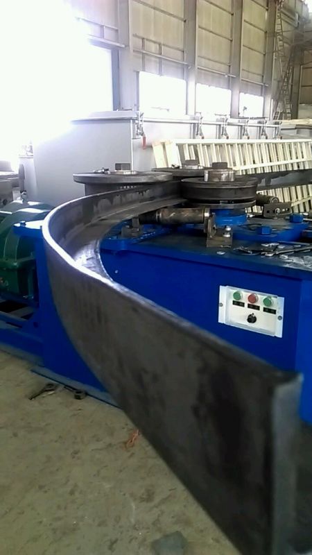 F6型卷圓機(jī)是對(duì)稱式三輥型材卷圓機(jī),集機(jī)電一體,將電動(dòng)機(jī)輸出的較高轉(zhuǎn)速通過(guò)傳動(dòng)裝置、聯(lián)軸器、減速機(jī)、齒輪等轉(zhuǎn)換為所需的大轉(zhuǎn)矩低轉(zhuǎn)速,帶動(dòng)位置固定的兩主動(dòng)輥實(shí)現(xiàn)旋轉(zhuǎn)運(yùn)動(dòng),為型材行走提供扭矩。被動(dòng)輥通過(guò)手輪前進(jìn)、后退實(shí)現(xiàn)位移,為卷制型材提供所需的加壓力,位移量由數(shù)字標(biāo)尺實(shí)時(shí)顯示。三個(gè)工作輥成等腰三角形分布,通過(guò)移動(dòng)被動(dòng)輥位置實(shí)現(xiàn)這三個(gè)點(diǎn)形成的弧線達(dá)到所需彎曲半徑,即調(diào)整所彎型材的曲率。借助被動(dòng)輥的壓緊及兩主動(dòng)輥的旋轉(zhuǎn)運(yùn)動(dòng),使型材經(jīng)過(guò)多道次連續(xù)彎曲,產(chǎn)生永久性的塑性變形,用于常溫狀態(tài)下將型材卷制成圓形、弧形、螺旋形等工件。372378308934599585